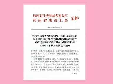 272022.01米兰网页版-米兰MiLan(中国)焊工班组荣获“2021年度河南省住房和城乡建设系统‘安康杯’竞赛优胜班组”称号 -