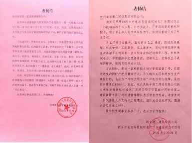 112022.02新乡建工建设有限公司和河南新飞智家科技有限公司向米兰网页版-米兰MiLan(中国)发来表扬信 -